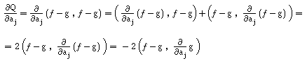 Pretende-se pois encontrar os parâmetros a0 , ... , an que minimizem a distância entre f e g , ou, o que é equivalente, minimizem :